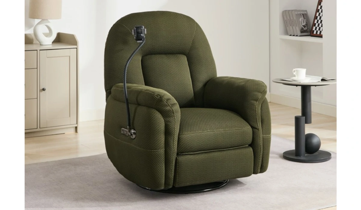 Reclining armchair blending classic and modern design with luxurious comfort. Perfect for any living space, combining timeless elegance with the convenience of adjustable reclining positions. It also features a phone holder.