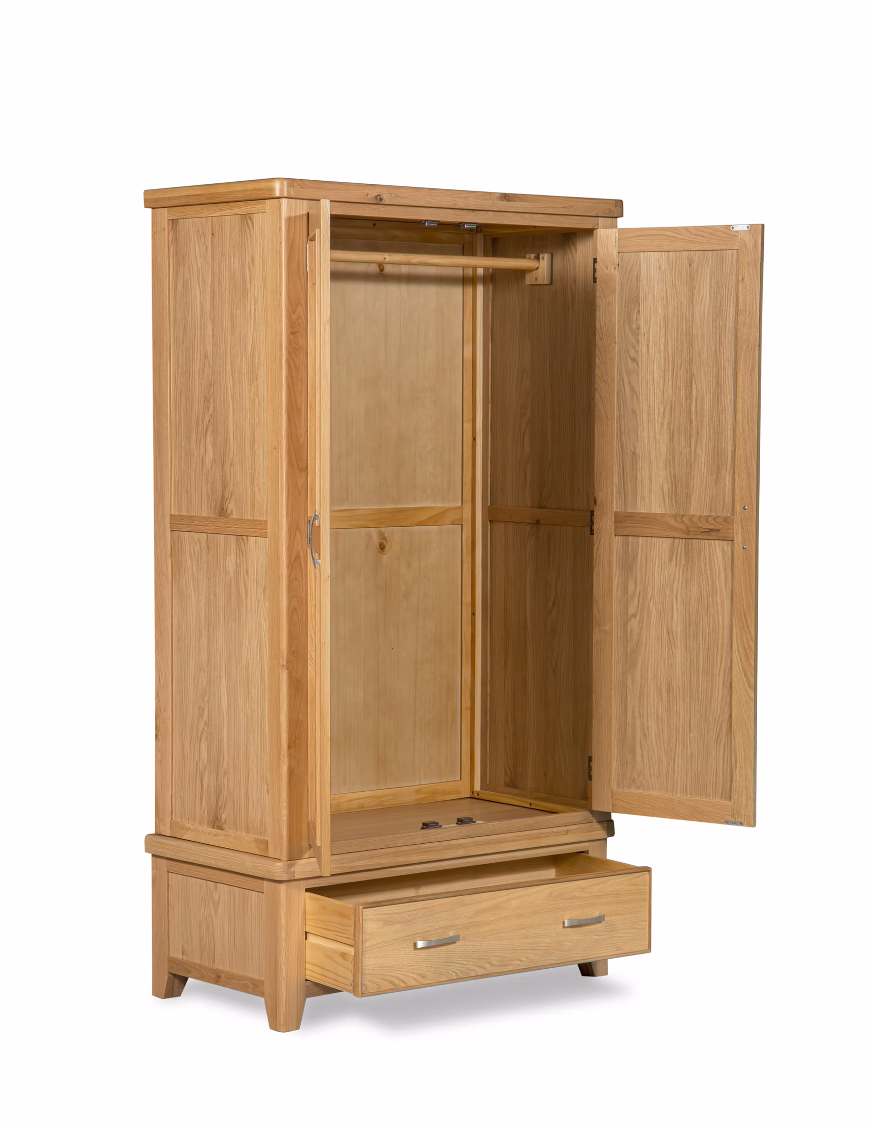 Our exciting chunky bedroom range in light European oak with curved edges and stylish chrome handles is a stunning addition to any bedroom