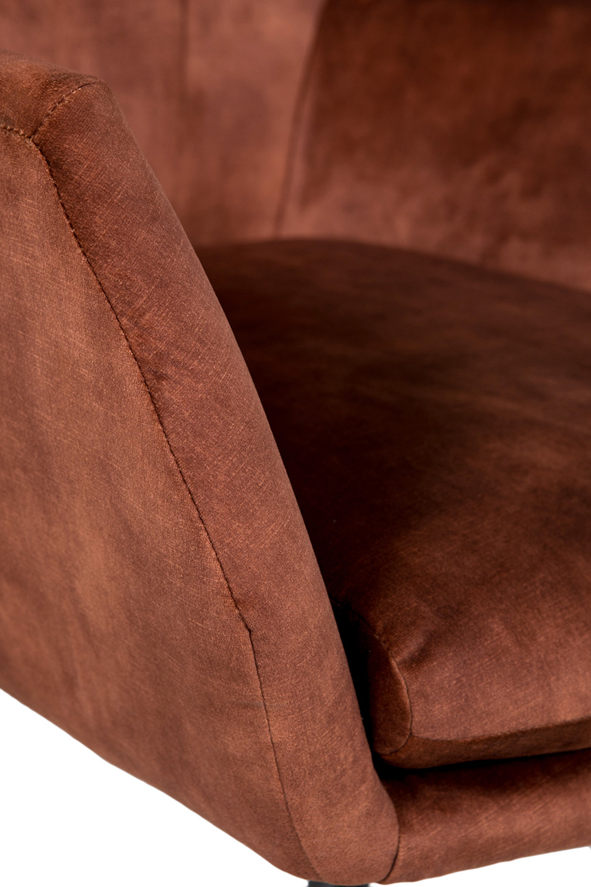 Bernard Accent Chair in Teal or Rust is a luxurious statement piece for your living space. Upholstered in mottled velvet upholstery, this chair exudes elegance and sophistication. The sleek powder-coated black leg adds a modern touch to its design. With a removable seat cushion, it offers both comfort and convenience.