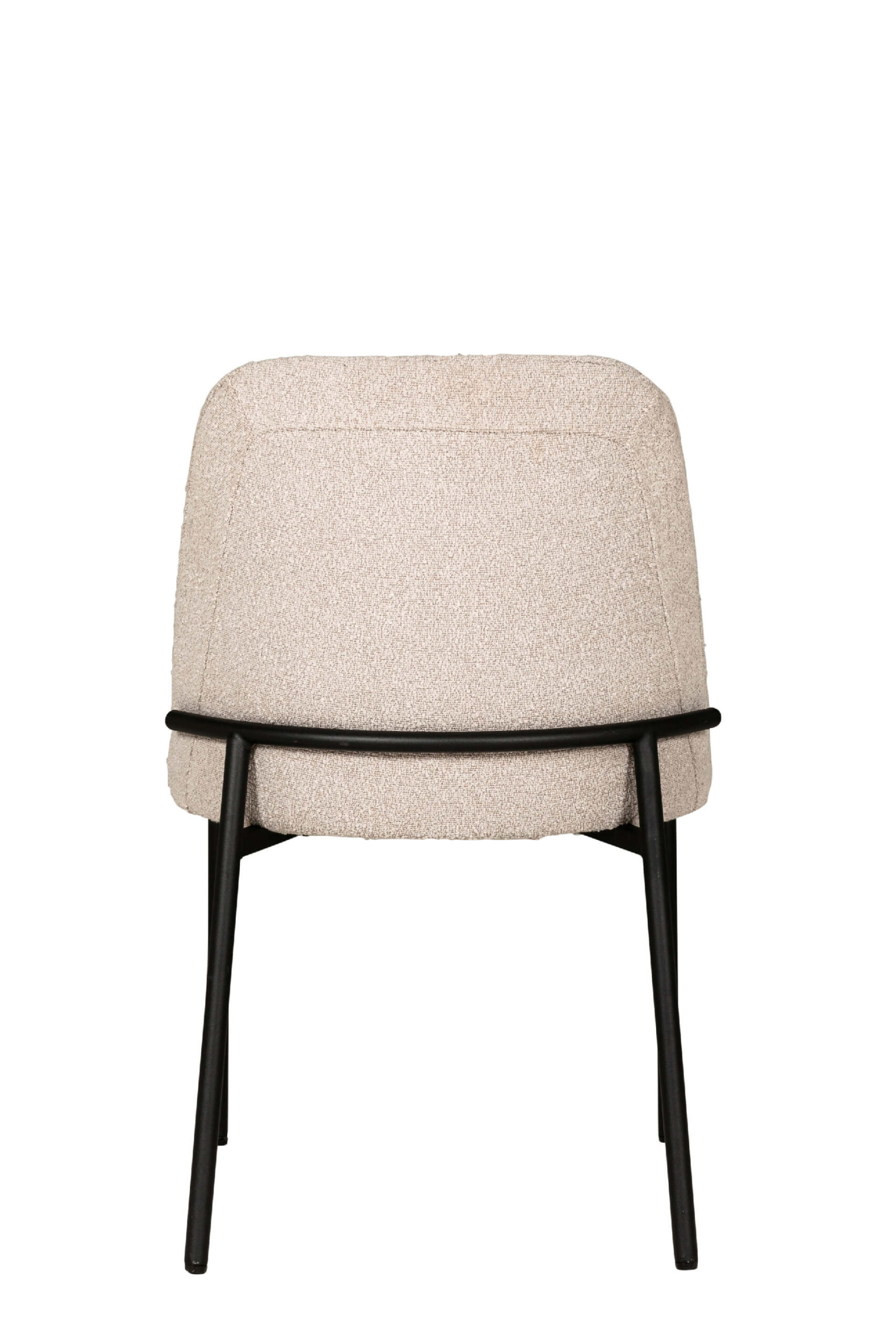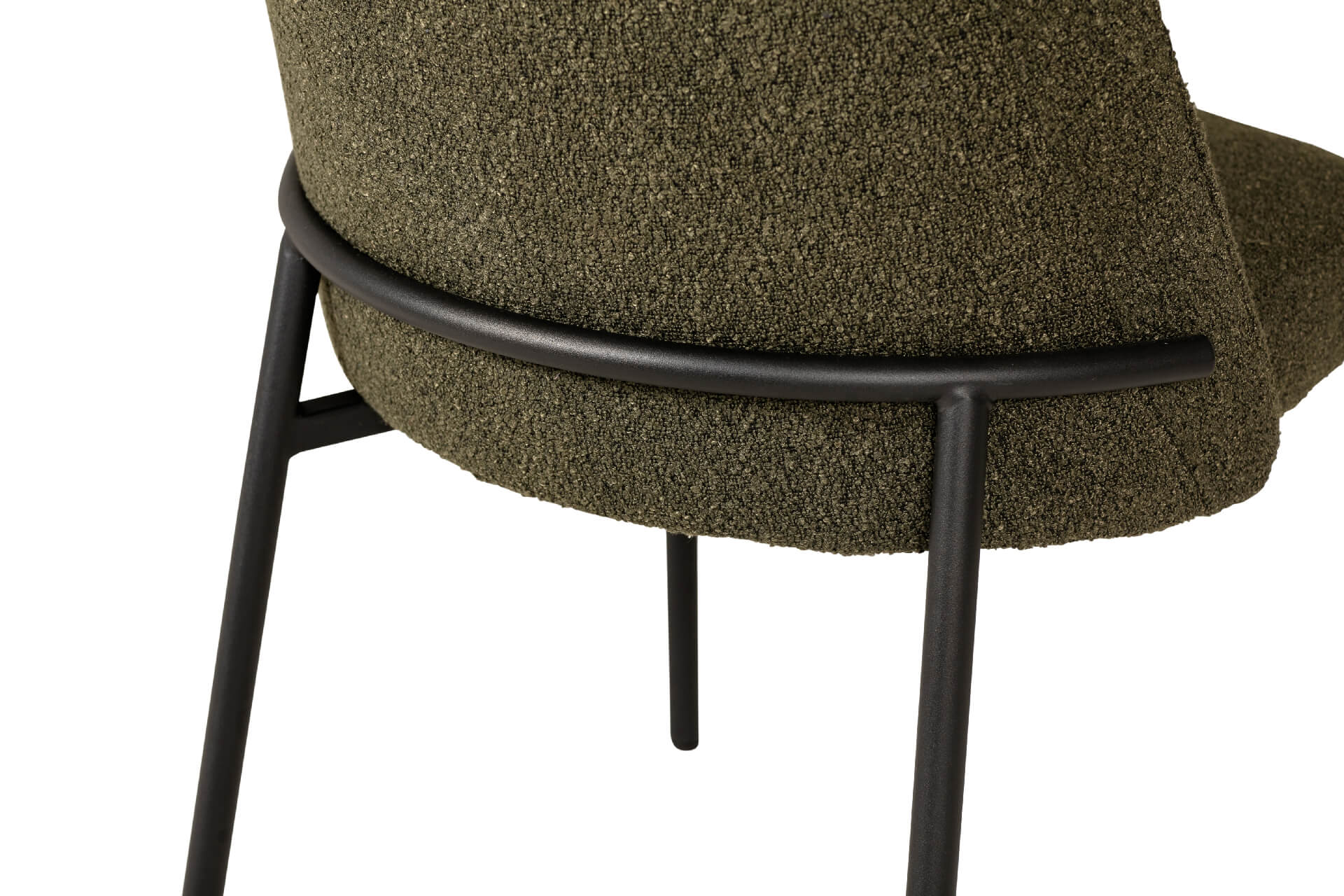 Cabe Dining Chair in Natural or Green is a stylish and versatile seating option for your dining area. Upholstered in modern boucle fabric, this chair complements a range of decor styles, adding texture and sophistication to your space. The black metal legs provide sturdy support while adding a contemporary touch.