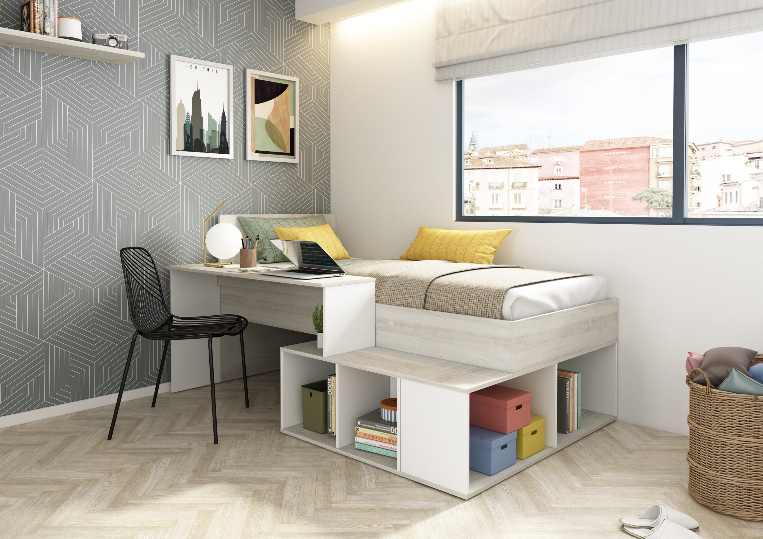 Cindi Low Sleeper Bed with Desk – a new stylish pod bed ideal for growing teenagers. The integrated desk is reversible and can be assembled on left or right side of bed. Storage cubes are also included and can double as a bed access ladder.