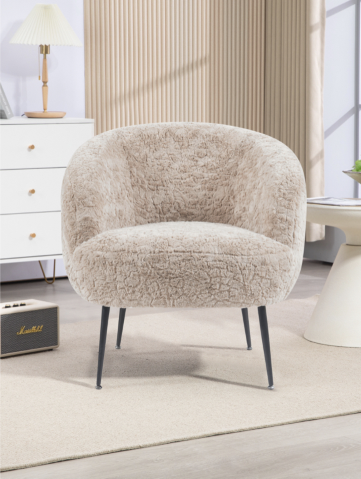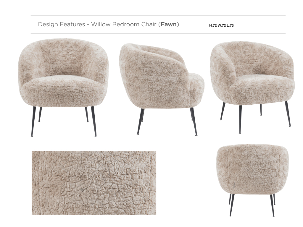Introducing the Davies bedroom chair, where comfort meets contemporary chic! Upholstered in luxurious fleece fabric, this elegant chair is available in two sophisticated shades: Lamb White and Fawn. The soft texture and modern design make Davies the perfect accent piece, whether you’re updating a reading nook or adding a stylish touch to your dressing area. With its cozy feel and sleek profile, this chair effortlessly enhances your space, offering both comfort and a touch of refined charm. Elevate your bedroom’s aesthetic with the Davies chair—modern, plush, and undeniably chic.